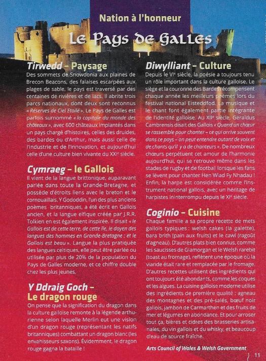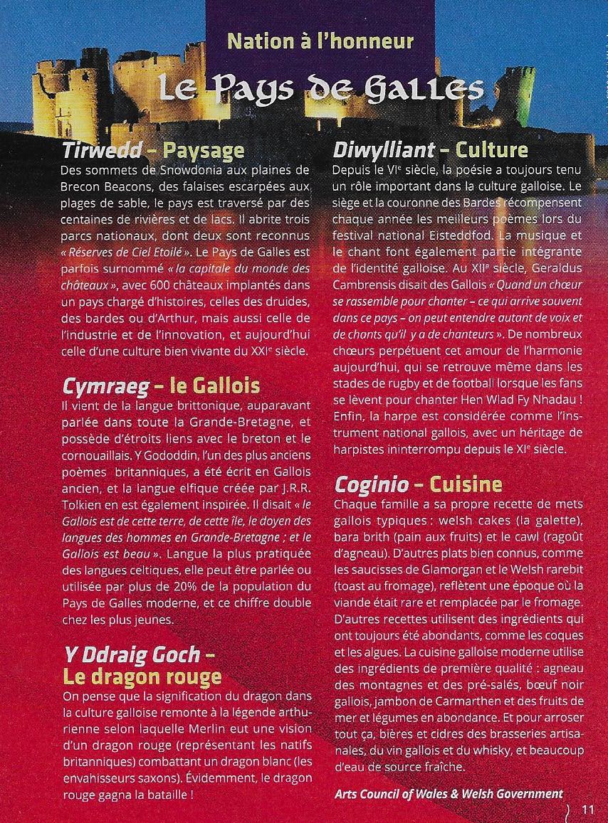 Le Pays de galles partage avec la Cornouailles et la Bretagne, la légende du roi Arthur et des Chebaliers de la table ronde. Les la,gues galloise et bretonne se rassemblent, la versioin bretonne de leur hymne étant devenue l’hymne breton, le Bro Gozh ma zadoù..