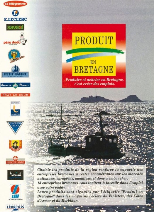 Il y a 20 ans quelques patrons nord-finistériens (groupe Even, Savéol …) font le pari de la proximité avec les consommateurs pour développer leur activité et créer des emplois. Ils lancent une marque territoriale illustrée par un logo jaune et bleu agrémenté d’un petit phare et du label Produit en Bretagne. Certaines entreprises bretonnes jouent le jeu et toutes dressent un bilan des plus positifs de leur participation à l’association bretonne – notoriété de l’image, réseau, emploi – en insistant sur » un état d’esprit » partagé, des valeurs et la mutualisation des expériences.
