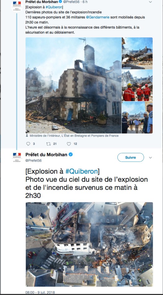 Une explosion a eu lieu dans la nuit du dimanche 8 au lundi 9 juillet à Quiberon entraînant un important incendie et l’évacuation de plusieurs habitants. Des blessés ont également été transportés vers l’hôpital de Vannes et d’Auray.
