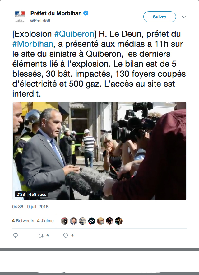 Certains des blessés présentent des « blessures sérieuses, précise le préfet Raymond Le Deun. iIs ont été pris en charge dans les hôpitaux de Vannes et de Lorient ».
