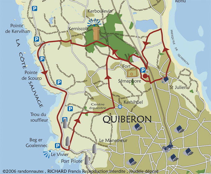 A pied ou à vélo, le tour complet de Quiberon permet de passer de l’Armor, côté mer à l’Argoat, côté terre. Départ boulevard Chanard bordé de villas du XIXè, témoins d’une époque où les industriels lyonnais passaient leurs vacances à Quiberon.