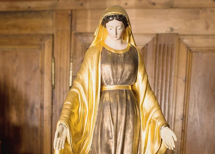 C’est donc surtout Marie que les Quiberonnais aiment honorer, comme le prouve la statue de plâtre doré conservée dans un placard paroissial et portée sur les épaules lors de la procession du 15 août à Port-Haliguen, le port de plaisance de Quiberon.